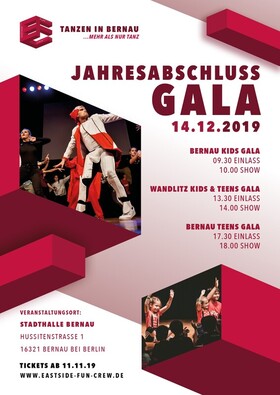 Auch dieses Jahr veranstaltet die Eastside Fun Crew wieder Ihre Jahresabschlussgala in einer neuen Location! Freuen SIe sich auf spektakuläre Performances der Eastside Fun Crew. Seien Sie mit dabei, wenn die Tänzer ihr Können auf der großen Bühne zeigen!